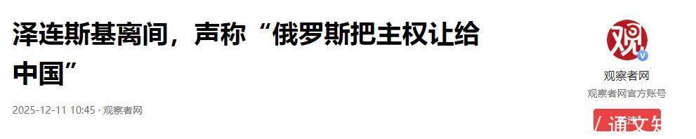 2025-12-11 10:45·观察者网 泽连斯基离间,声称“俄罗斯把主权让给中国”