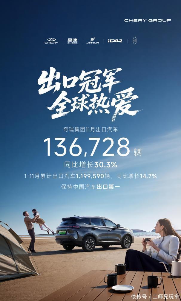 奇瑞集团发布最新海外销售数据。2025年11月,集团出口汽车136,728辆,同比增长30.3%,已连续七个月单月出口规模稳定在10万辆以上,持续巩固其中国汽车出口领军者地位。2025年1-11月,奇瑞集团累计出口汽车已达1,199,590辆,同比增长14.7%,平均每25秒就有一辆“奇瑞造”驶向海外。截至目前旺润配资,奇瑞集团全球累计用户突破1828万,其中海外用户超过570万,国际化基本盘日益坚实。