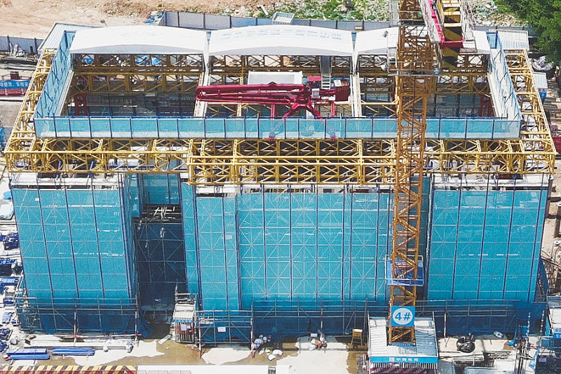 值得关注的是,安全与环境效益的双重提升。通过智能控制系统对风速、结构应力等12项关键参数的实时监控,结合“一柱三道”附墙结构设计与全封闭防护体系,实现高空作业零事故;喷淋喷雾、可调节天幕等系统让施工现场PM2.5 浓度下降30—40%,工人作业环境温度稳定在 28—30℃上下,彻底告别“露天施工靠天吃饭” 的困境。